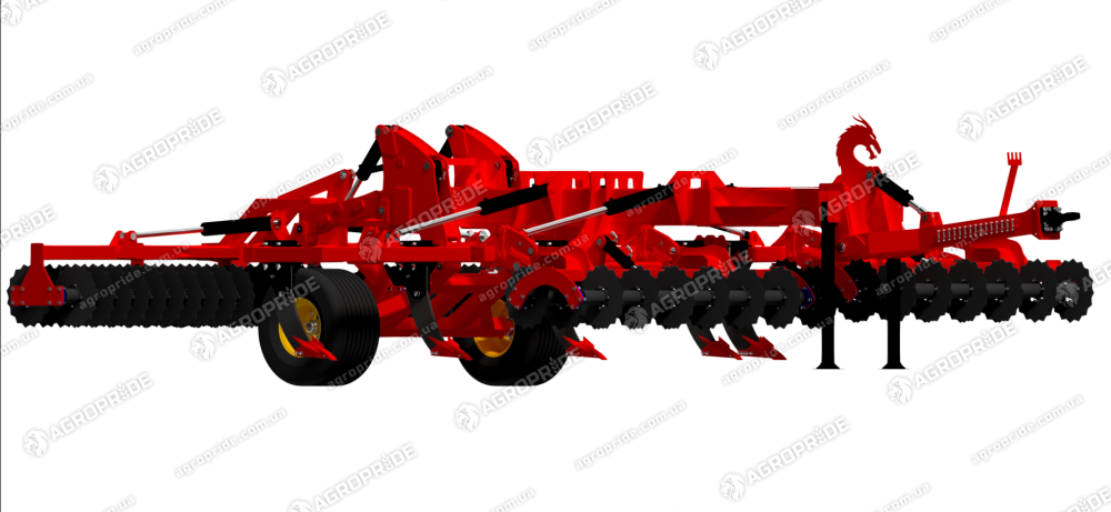 Завершує роботу важкий тандемний опорний дисковий коток. Коток складається з двох рядів рівних зубчастих з двосторонньою індивідуальною заточкою дисків, що ріжуть будь-які рослинні рештки і руйнують будь-які грудки ґрунту при цьому не залипаючи в вологих умовах.